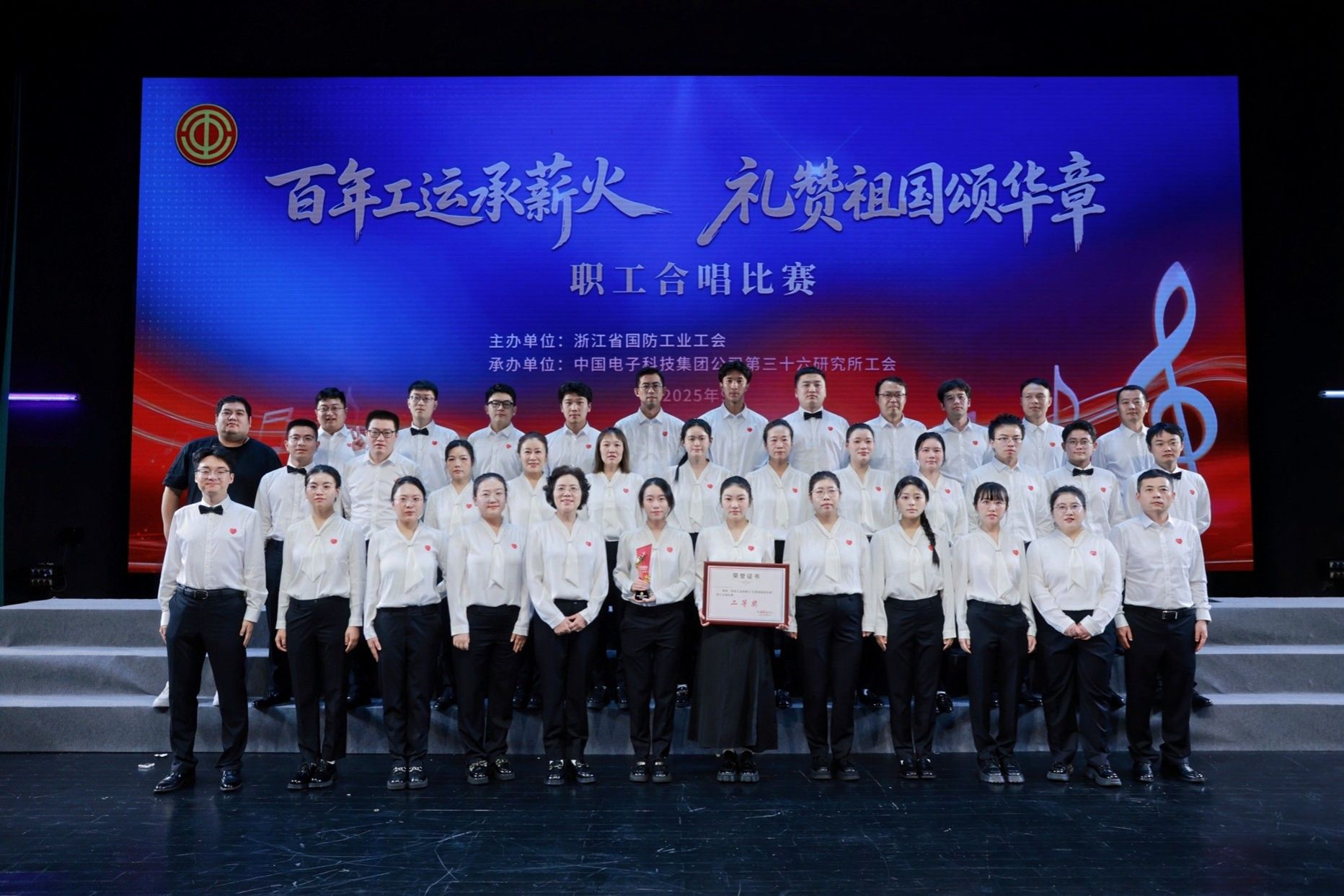 近日,为庆祝工运百年、喜迎国庆,由省国防工业工会主办、中国电科36所承办的“百年工运承薪火 礼赞祖国颂华章”职工合唱比赛在嘉兴秀湖音乐厅隆重举行。亚洲色情工会组织职工代表队参赛,凭借深情演绎的《我和我的祖国》荣获比赛二等奖,展现了亚洲色情职工良好的精神风貌和艺术素养。